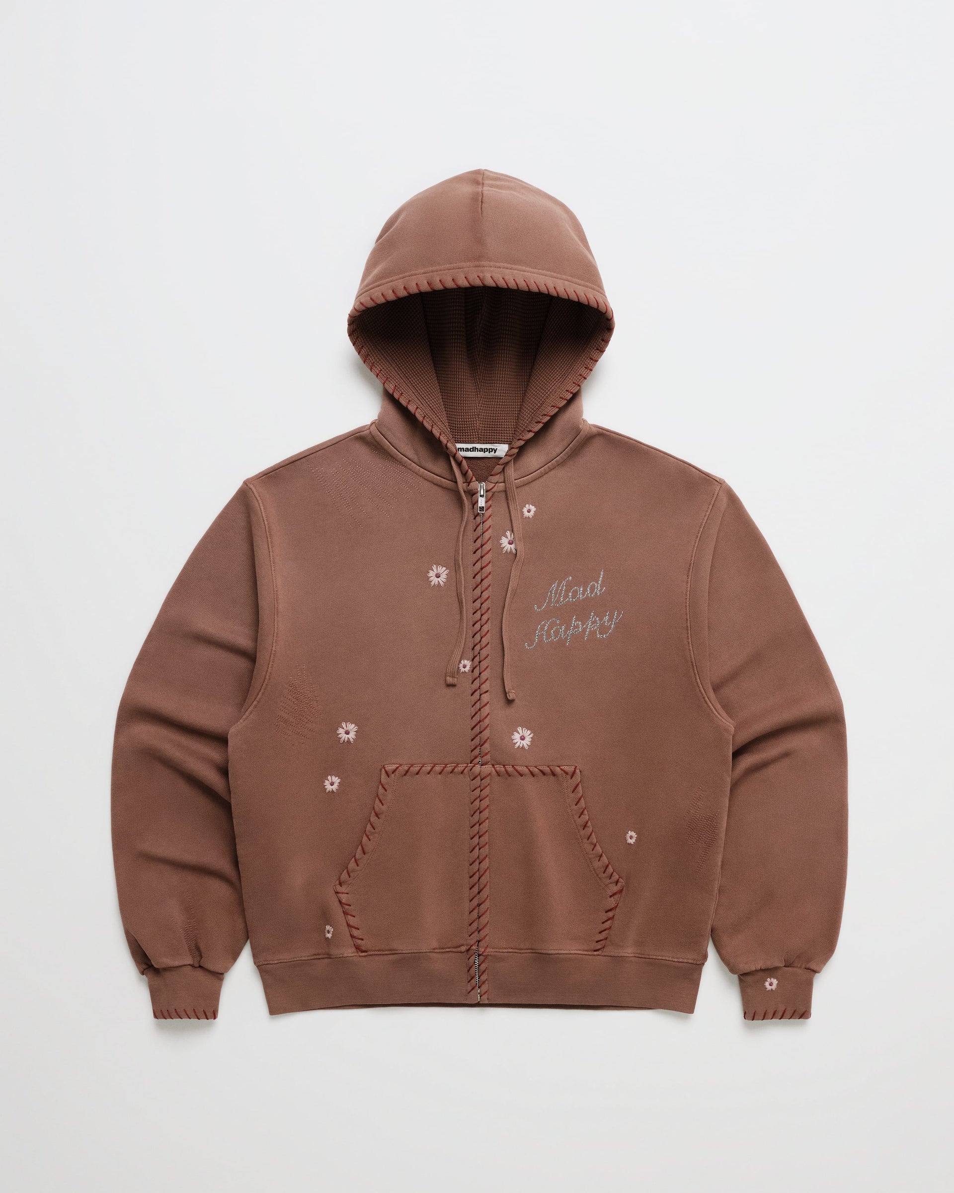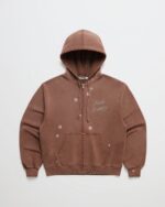 Crystal Flower Zip Up Hoodie Brown